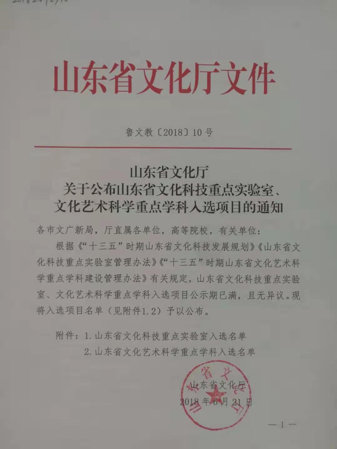 省级以上重点学科-山东省文化厅文化艺术科学重点学科