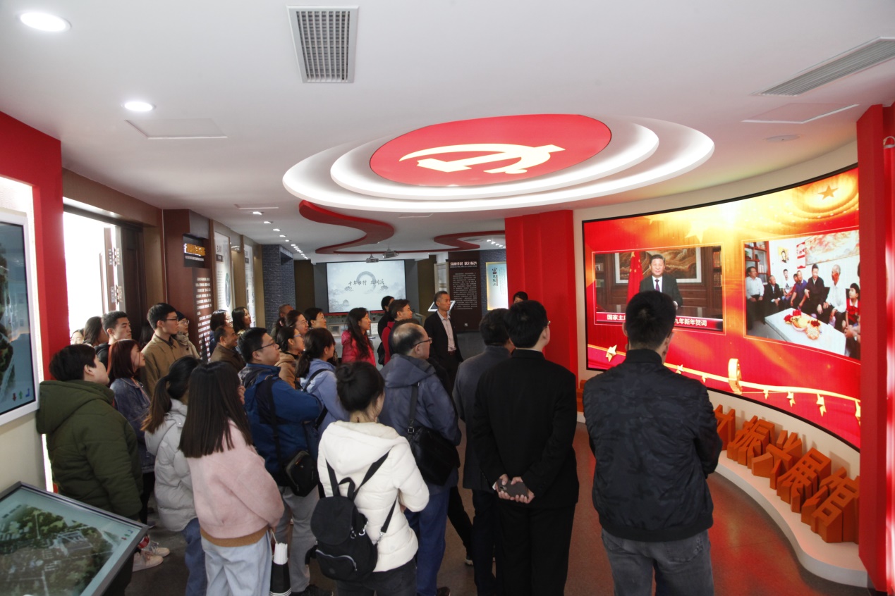 随后,师生们来到了济南市章丘区的双山街道三涧溪村,切身体验乡村振兴中的新农村新面貌,感悟新时代新思想。三涧溪村先后荣获“全国民主法治示范村”、“山东省级文明村”等荣誉称号。2018年6月,习近平总书记视察山东时,曾来到三涧溪村考察并做出重要指示,在全国引发强烈反响。在讲解员的带领下,我们了解到三涧溪村高淑贞书记充分发挥党员模范带头作用,用短短3年时间实现了三涧溪村由乱到治的转变。此外,村党总支为发挥全体党员作用,持续开展了“党旗飘飘映四邻,四邻联动党放心”的主题活动和“党建引领、四邻联动、共享幸福”的农村社区治理工作,取得了显著成效。