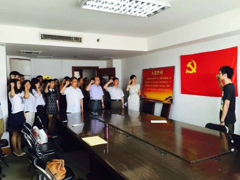 与会人员在庄严的国歌声里体会我党的奋斗历程与辉煌成就。随后,全体预备党员在领誓人裴延峰的带领下,面向神圣的党旗进行了宣誓。接下来,预备党员代表陈韵竹及老党员代表赵连昌分别进行发言,表明了自身学习“三严三实”并落实到实处的决心。“牢记入党誓词,忠于党,忠诚地履行自己的义务,时时处处维护党的荣誉,这是对每一个党员包括我自己的基本要求。”公司党委书记赖昭瑞进行了讲话,希望教师党员在传道育人方面、员工党员在学习和品德方面都能发挥先锋模范带头作用,服务于同学,服务于公司,最终服务于社会。仪式在国际歌激昂的旋律中结束,将党的庄严辉煌的历史、现在与未来烙印在每一个与会人员的心中。