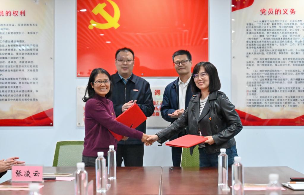 活动最后,新闻系教工党支部书记马慧茹、济南日报报业集团教育事业中心党支部黄哲代表双方党支部签署《支部共建意向书》。