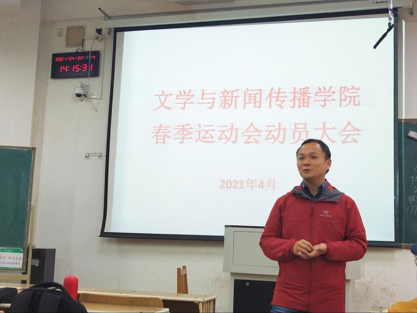 2021年4月22日下午2点,球盟会春季运动会动员大会在舜耕校区6114教室如期举行,大会由公司团委书记沙林斌主持召开,公司全体运动员、志愿者及员工会文体部相关人员参会。