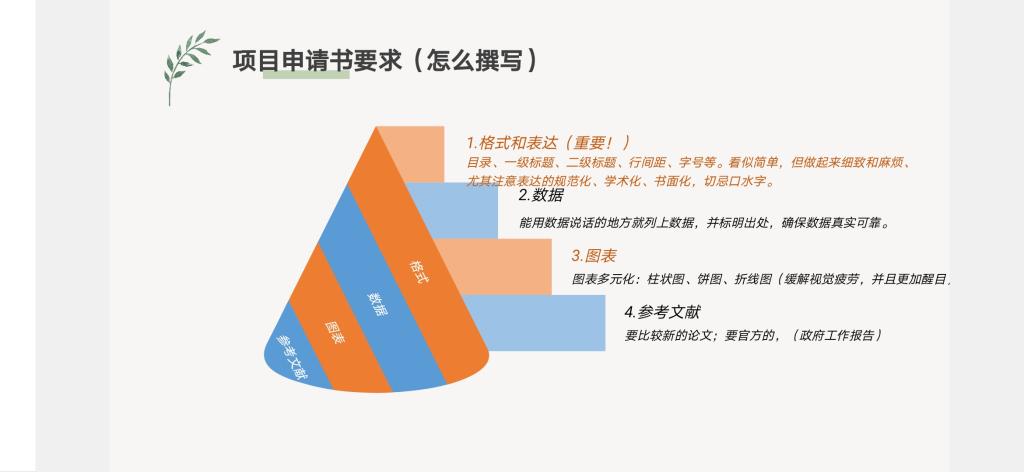 而后,王建娇同学为大家介绍了国家级老员工创新创业训练计划项目的相关事宜。她以蔡元培的劝学之语引入主题,首先为大家简单介绍了国创的相关内容,让大家认识到其含金量和对于创新的意义。随后,她从选题来源和选题要求两方面切入,提醒大家聚焦社会热点,注入自己的专业特长,做到有价值,有意义,可创新,坚持原创并保证可实施性。接下来,她为大家提供了一些参考文献来源和制作图标的工具和网站,便于大家更好地进行实践。最后,王建娇同学为大家分享了许多日常的经验,鼓励大家积极参与活动,培养创新能力,进一步打开视野。