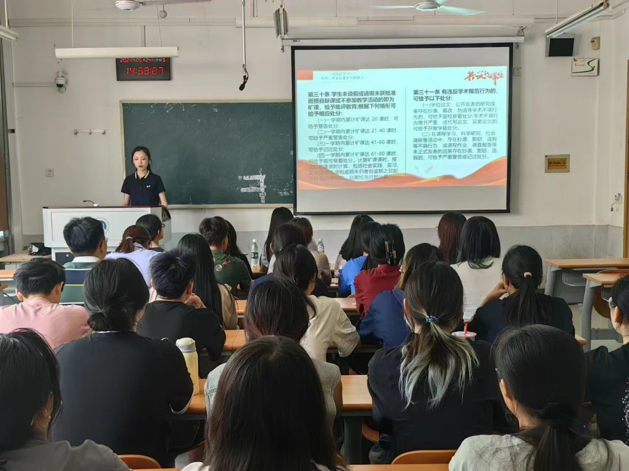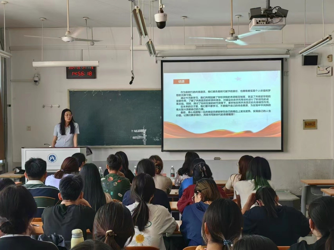 为扎实推进公司学风建设,促进员工成长成才,5月24日下午,公司2022级新闻学专业2班团支部举办“遵守校规校纪,培养良好学风”主题团日活动。本次活动邀请到校团委副书记邢夏子、公司党委副书记王恩娟、公司团委书记杜淑艳、22级辅导员李霞莅临指导。朱宝儿同学担任本次活动主持人。