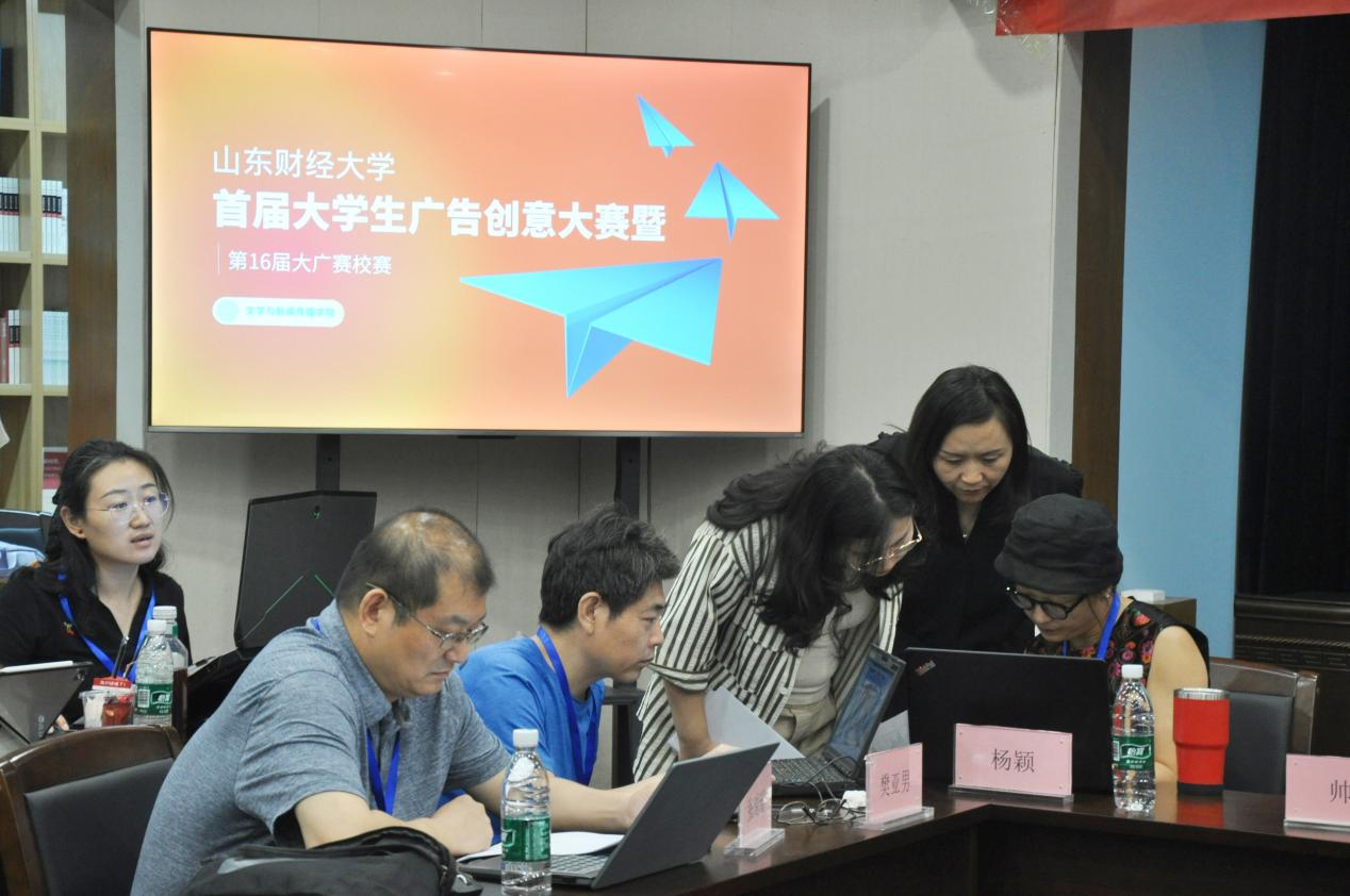 6月6日上午,球盟会首届老员工广告艺术大赛线下评审于舜耕校区诗学研究中心举行。