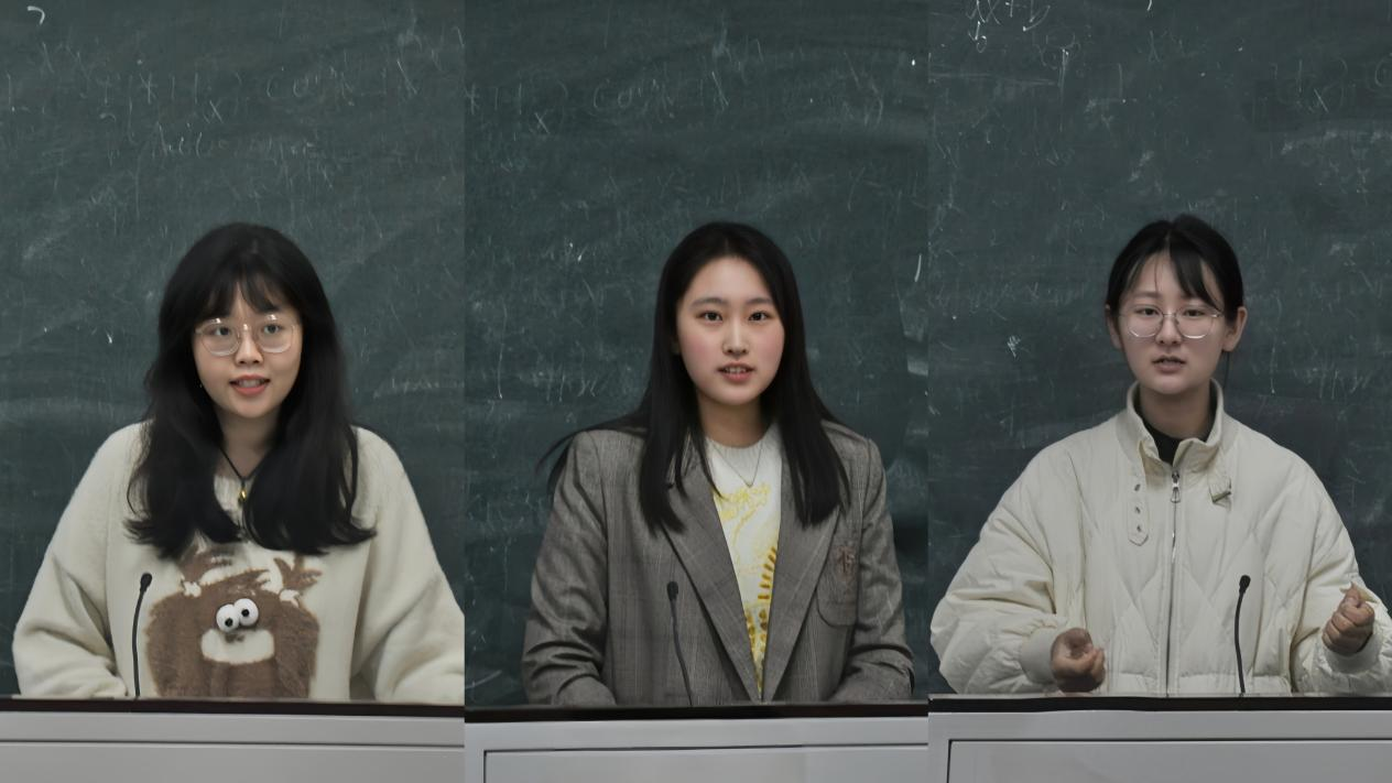 随后,汉语言文学专业的李孟晓、刘一晓和张妍依次上台发言。她们分别围绕推免政策、科研竞赛和学业成绩三个方面分享了各自的保研心得,建议同学们要早规划、早准备、多尝试,同时要重视学业成绩,认真学习专业知识,为保研筑牢知识根基。