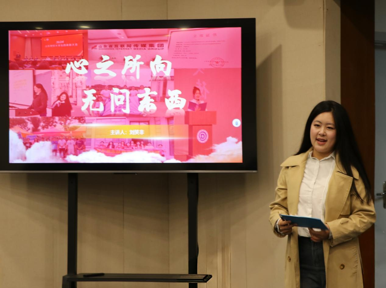 为加强公司生涯教育和就业指导,帮助公司员工增强职业规划意识,科学合理规划学业与职业发展,提升就业竞争力,10月31日下午,公司于诗学研究中心诗学讲堂举办第二届老员工职业生涯规划大赛。公司党委书记杜啸尘、党委副书记王恩娟,山东省就业促进会智库专家、高校就业与人才引进专业委员会副主任委员王方明出席活动。赵连昌、樊亚男、张健、鞠洪伟、边慧五位老师担任本次大赛评委。