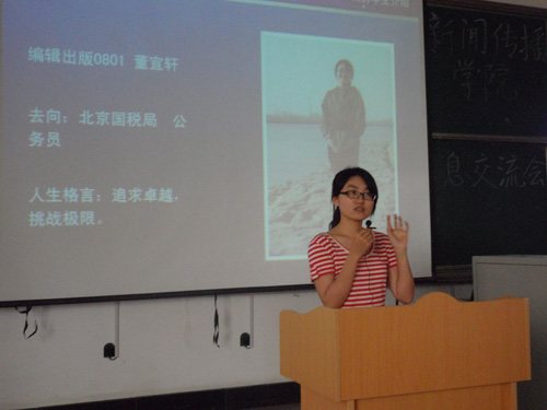 本次“就业信息交流会”的成功举办,为同学们提供了一个互相交流的良好平台,为同学们的考研、就业之路打下了坚实的基础,提供了宝贵的经验,受到了同学们的一致欢迎。