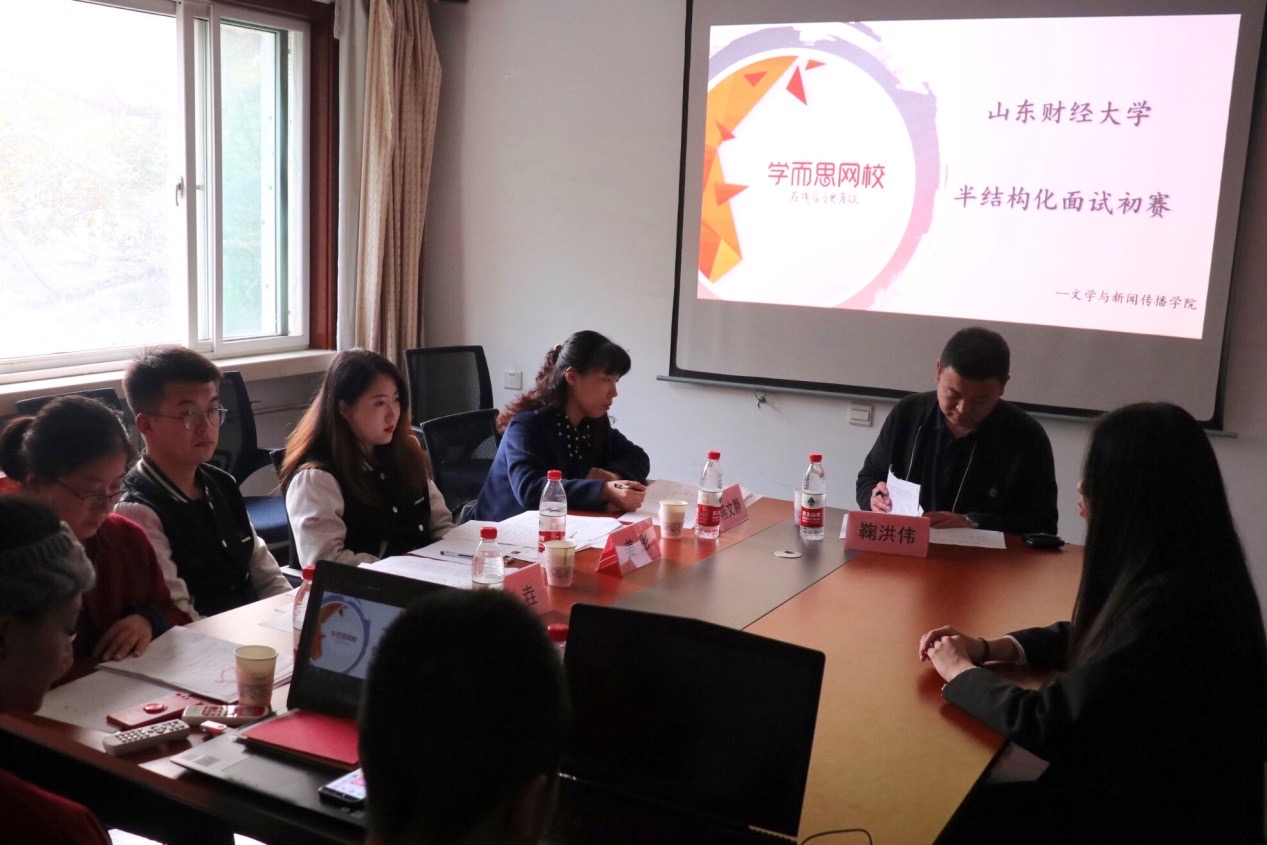 2019年11月8日下午两点,球盟会半结构化面试大赛初赛在舜耕校区干训楼举行。面试官由学而思网校老师姜彤、王垚、经济公司老师裴斐、数学与数量经济公司老师燕文静,公司老师鞠洪伟担任。