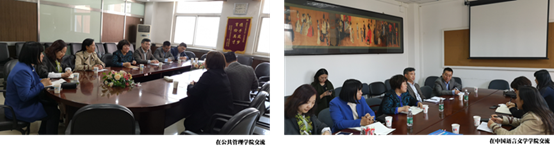 4月15日下午,考察团一行首先来到对外经贸大学,先后在公共管理公司及中国语言文学公司访问交流,受到公共管理公司吕维霞副经理、文化与休闲产业研究中心吴承忠主任、中国语言文学公司周晨萌副经理的热情接待。