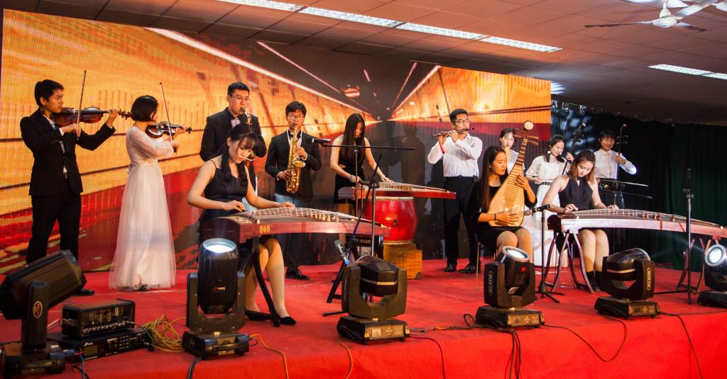晚会分为忆古革今、彼闻者新、缔新文管和执梦远航四个篇章,动感激扬的舞蹈拉开了晚会的帷幕,飘逸灵动的汉服舞蹈、劲爆酷炫的街舞、幽默诙谐的相声、婉转悠扬的器乐表演尽显文院学子青春活力。在晚会的最后篇章,公司党委书记姜竹青以《绒花》和《骆驼草》这两首动听的歌曲表达了对公司学子的激励和祝福,郭颂老师的朗诵《我亲爱的祖国》激荡起我们心头汹涌澎湃的爱国之情和强烈的民族自豪感。最终,晚会在校歌《梦想花开》的大合唱中缓缓落下了帷幕。