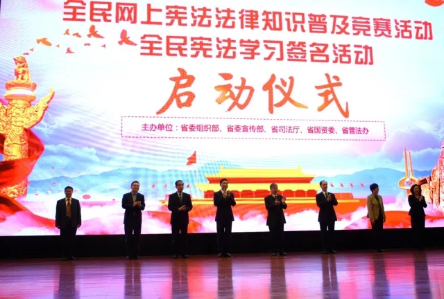 2018年12月4日宪法日当天,由省委组织部、省委宣传部、省司法厅、省国资委和省普法办主办的全民网上宪法法律知识普及竞赛活动暨全民宪法学习签名活动启动仪式在山东大厦影视会议厅举行。