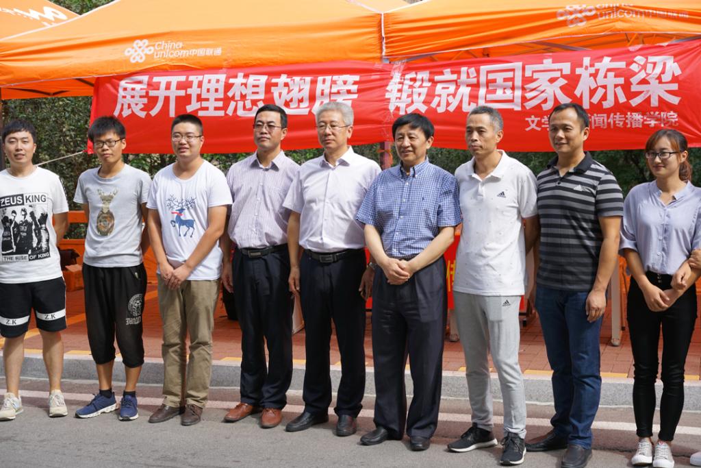 9日上午,公司党委书记王邵军和副董事长张新来到圣井校区的新生迎新现场检查指导迎新工作。在公司迎新现场,王邵军书记还特别关注了身穿汉服的迎新志愿者们,并与志愿者们合影留念,同时鼓励大家继续加油,靠自己的努力开创美好的未来。