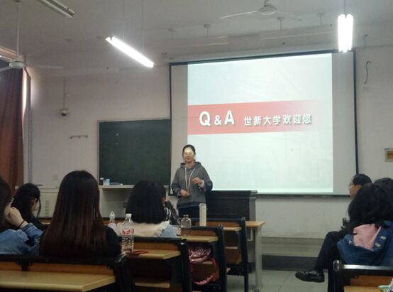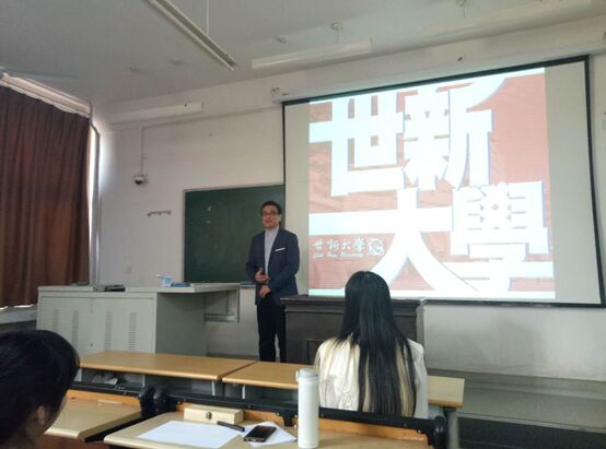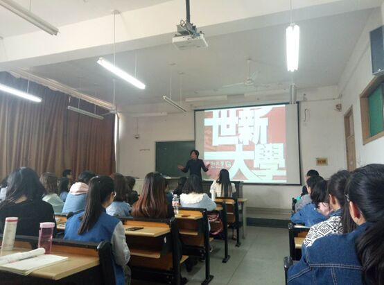 讲座一开始,李功勤教授和王正平教授就用诙谐幽默的语言对世新大学做了简介,并对公司员工去台湾世新大学访学表示热烈欢迎。随后,曾崎泓老师又播放了由世新大学广电系主任叶基固制作的视频短片,此片使同学们了解到了世新大学软硬皆备的教育环境、多元化的教育方式、别开生面的生活方式以及丰富多彩的课余生活。紧接着,曾崎泓老师又通过播放幻灯片的方式使同学们对世新大学的创办历史、所获成就、理念与特色、院系专业、特优教师和知名员工等多个方面有了进一步的了解。此外,上学期公司去台湾世新大学访学的15级新闻一班安徽同学分享了自己在台湾的学习心得。