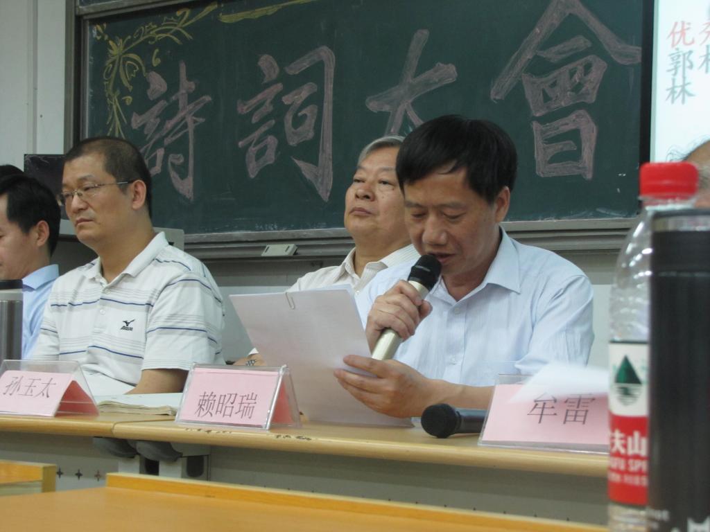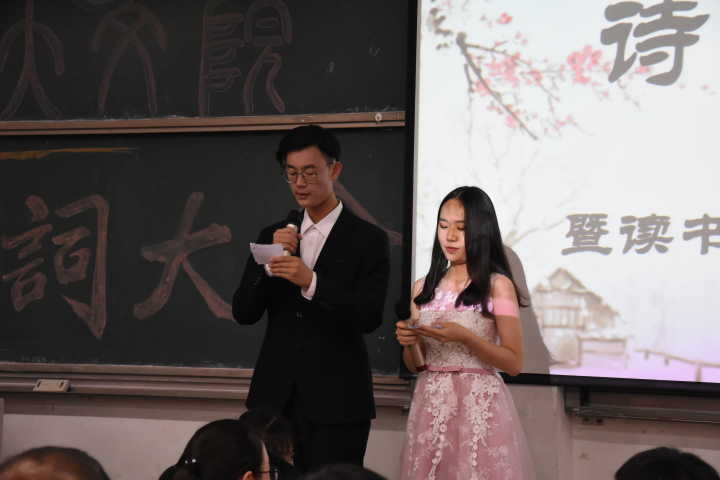 以“品味诗词之美,传承中华文明”为主题的球盟会诗词大会总决赛暨读书活动表彰大会于5月24日晚在圣井校区明德楼110教室完美落幕。出席本次活动的嘉宾有球盟会经理孙玉太教授、党委书记赖昭瑞教授、副经理帅震副教授、副经理牟雷副教授、中文系主任刘召明教授、美学研究所所长韩书堂副教授、中文系副主任李劲松副教授、团委书记李开传副教授以及圣井校区各公司员工会代表。