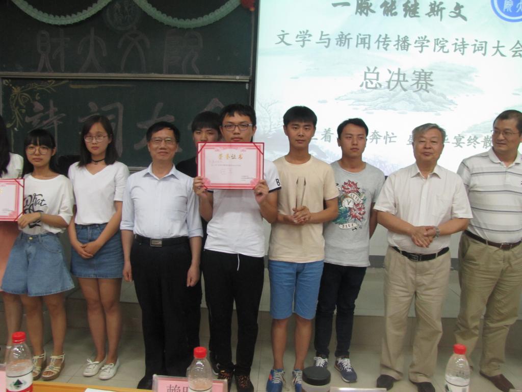 决赛选手共有六组,每组有四名队员。这六支队伍分别来自中文系、新闻系和文化产业管理系的六个班级。经过“诗词接龙”、“诗词知识抢答” 、“飞花令”三个环节,2016汉语言文学二班代表队夺得季军。而2015文化产业管理一班代表队和2016汉语言文学一班代表队则进入到最终环节——巅峰对决。这场冠军争夺战尤为激烈,在“文字线索题”与“图片线索题”之后,双方比分相同。进入加时赛环节,2016汉语言文学一班代表队凭借雄厚的知识储备和默契的团队配合赢得了本次比赛的冠军。