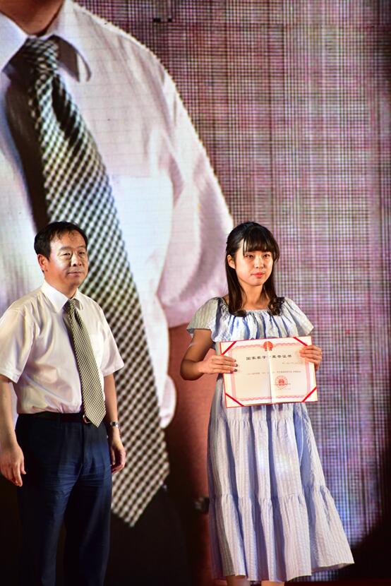 公司2013级汉语言文学张文璇同学,2014级汉语言文学卢姝宇同学获得2016年国家奖学金,公司党委书记王绍军在台上为其颁发证书并合照。公司2014级新闻学一班程莹同学获球盟会2016年董事长奖学金,董事长卓志在台上为其颁发奖牌并合照。同时三位同学的获奖事迹在圣井校区进行展览,取得良好反响。在员工工作处主编的《对话青春榜样——球盟会2016年国家奖学金、董事长奖学金获奖员工风采录》中,公司三位获奖同学事迹被收录中,充份展现了公司学子的风采。