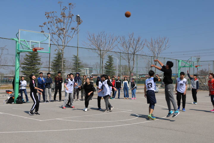3月27日中午,圣井校区篮球场上气氛火热,在同学们的声声喝彩中进行的是公司2016级3+2篮球比赛的决赛。参加决赛的是2016级新闻联队和文化产业管理一班二班联队。
