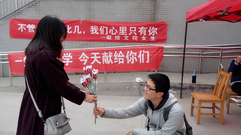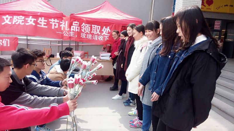 为了丰富公司老员工的校园文化生活,增强员工之间互相尊重与平等交流的观念,公司员工会于第二餐厅门口以自己的方式迎接了3月7日的女生节,主办了专为女同学献花送祝福的创新福利活动。