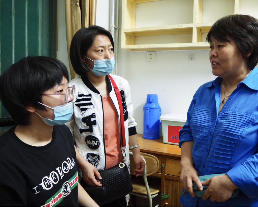 从济南站返校的途中,李开传书记、沙林斌老师一直暖心地与刘蕊同学及其父母进行交流,通过这种方式减轻他们来到一个崭新而又陌生的城市的紧张。刘蕊的母亲谈到,孩子小时候有些胆怯,但她与孩子父亲一直鼓励孩子要勇敢、自信,孩子是在爱中成长的,没有因为身体的疾病而自卑过。