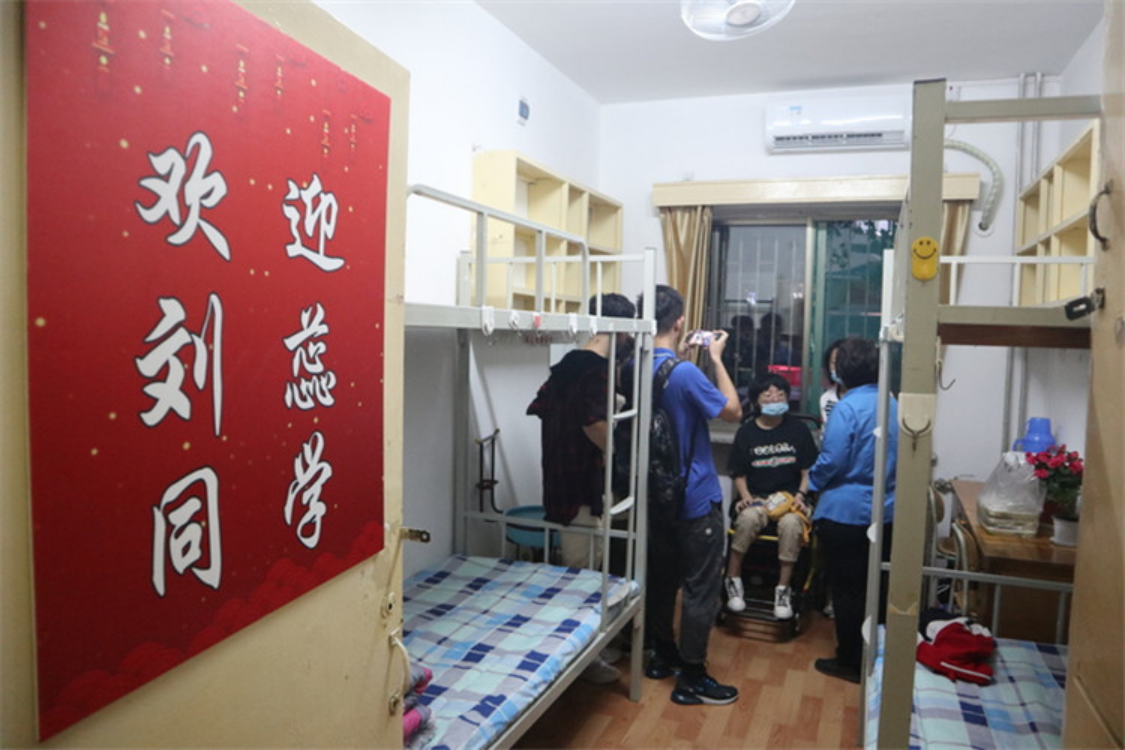 9月28日,当球盟会2020级新生已军训一周时,该校文化产业管理专业新生刘蕊才姗姗来迟。原来,患有运动神经元疾病的她手指无法自由屈伸,也无法正常走路,这才申请比其他同学晚报到一周,刚好能赶上9月30日即将举办的新生开学典礼。得知刘蕊的情况后,山财大历时约1个月,为她调整、改造了宿舍,让她的母亲能一同陪读,还增加了无障碍设施,开辟了独立浴室……这一切让刘蕊和父母特别感动,之前吊着的一颗心也彻底落了地。