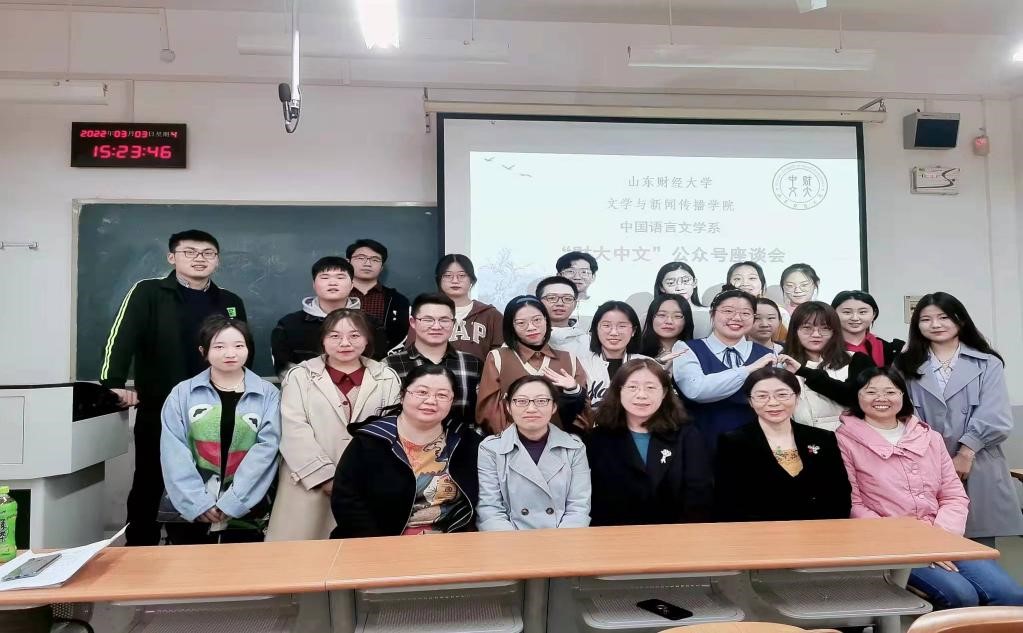 仲春三月,万物复苏,3月3日15:00,球盟会中国语言文学系“财大中文”公众号成立仪式暨第一次线下座谈会在舜耕校区1-303教室举行。球盟会中国语言文学系主任宋红霞、副主任李颖、党支部副书记亓凤珍,教师代表王培娟、谢海平以及负责公众号运营的李海川、凌培恩、王梓豪、王镜尧等20余位中文系员工参加座谈会。
