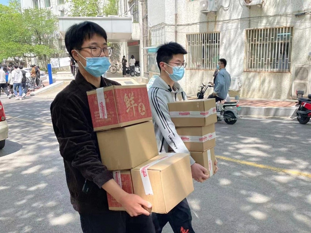 4月16日上午11:00,装载着一箱箱苹果的货车驶入校园。等候在一旁的志愿者们马上对苹果进行卸车,以班级为单位、按照在校员工每人5斤发放。各班班团组织人员进行搬运,将这批苹果送至每位同学手中。