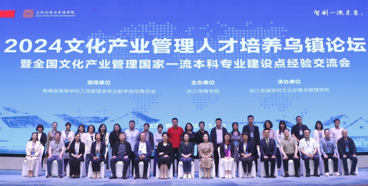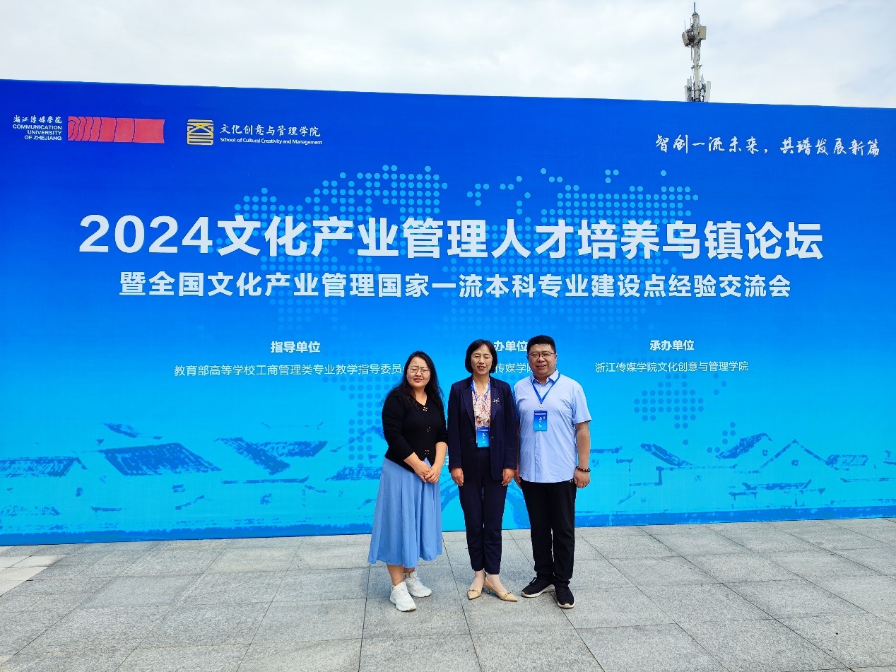 5月12日,公司副经理、文化产业管理国家一流本科专业建设点负责人李军红教授带队赴浙江传媒公司桐乡乌镇校区参加2024文化产业管理人才培养乌镇论坛暨全国文化产业管理国家一流本科专业建设点经验交流会并作主题发言,文化产业管理系主任张伟、副主任李海燕陪同参会。