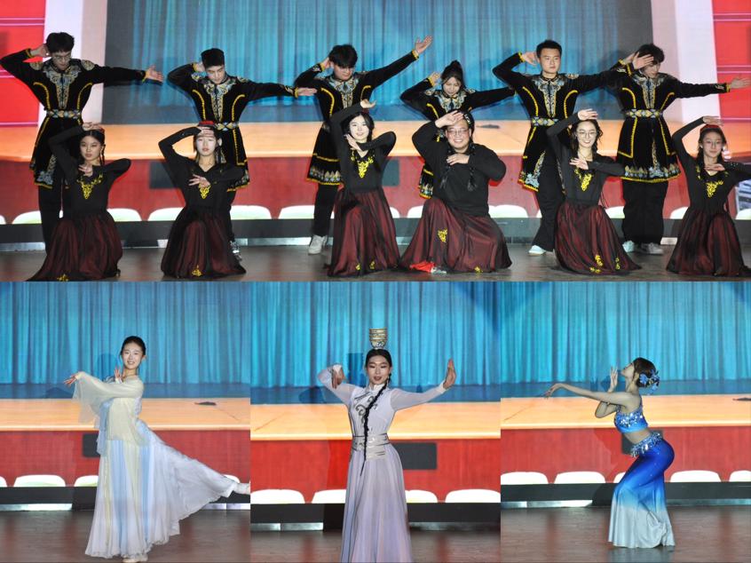 《悦见新疆》中,演员们舞姿翩翩,表演中洋溢着浓郁的新疆民族特色,展现出公司多元文化交融、多民族和谐相处的良好环境,进一步铸牢了同学们的中华民族共同体意识,促进了民族团结与交流。