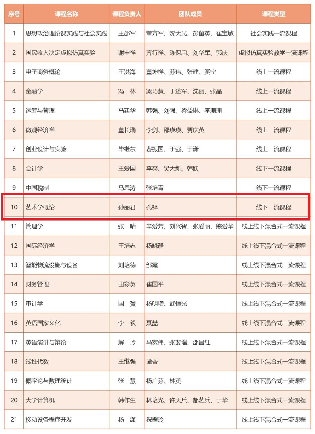 近日,教育部发布了《关于公布第二批国家级一流本科课程认定结果的通知》(教高函〔2023〕7号),公布了第二批国家级一流本科课程认定结果,本批次,公司艺术学概论课程被认定为国家级一流本科课程,本课程为线下一流课程,由孙丽君教授担任课程负责人,孔铎讲师为团队成员。