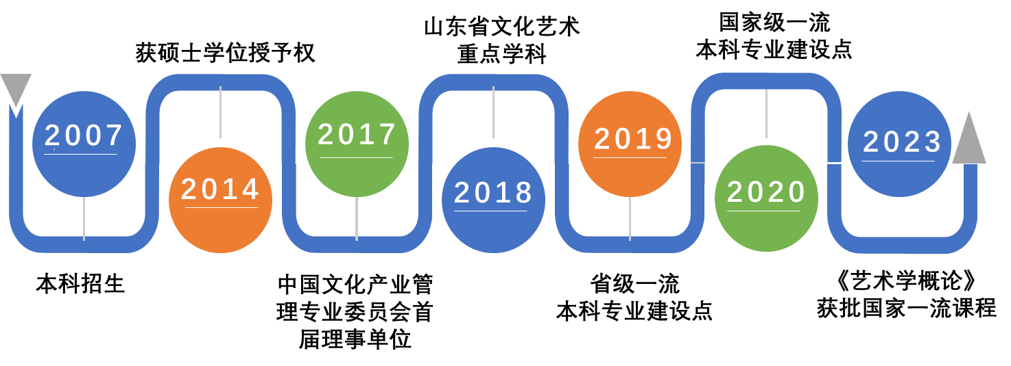 球盟会文化产业管理专业创办于2006年,在盛世兴文的时代背景下应运而生,2007年获批本科招生,属国内较早设立。2014年获硕士学位授予权,2017年当选中国文化产业管理专业委员会首届理事单位,2018年获批山东省文化艺术重点学科,2019年获批为省级一流本科专业建设点,2020年获批为国家级一流本科专业建设点。2023年《艺术学概论》课程获评国家一流本科课程。专业具有较强的社会影响力,近三年在软科中国大学专业排名中稳居全国前八,在员工会中国大学专业排名中稳居前三,在中国科教评价网中国大学本科教育分专业排行榜中稳居前三。