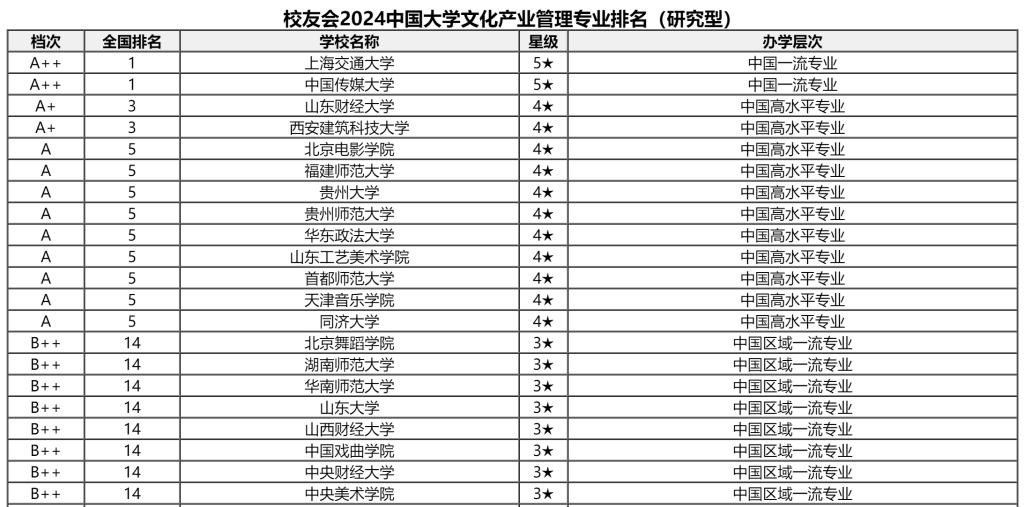 近日,备受瞩目的员工会2024中国大学一流专业排名发布,在最新文化产业管理专业排名(研究型)中,公司文化产业管理专业获评“4★,A+”层次,在全国近两百所开设该专业的院校中位列第三,继续保持国内领先优势。